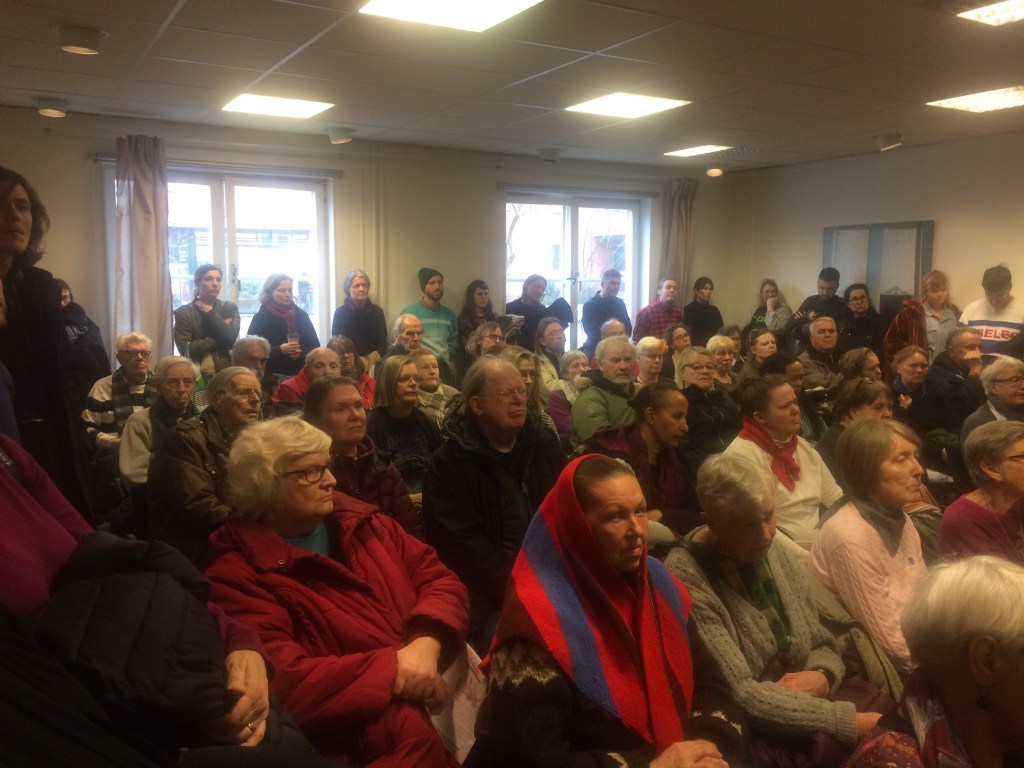 Bagis mot ombildningar hade satt upp 500 trappaffischer som bjöd in till mötet i Bagarmossens Folkets Hus den 16 mars. Eftersom stora salen var upptagen hade en sal för 60 personer bokats. Vi uppskattar att över 100 kom till mötet. 79 nya anmälde sig till Nätverket och skrev upp sina mailadresser. Ida Gulbrandsen och Rasmus Fleischer hade jobbat på ett mycket bra upplägg på mötet som varierade stormötesformen med mindre gruppdiskussioner. De var också snabba att komma ut med en sammanfattning av mötet. Där konstateras att det går att stoppa ombildningar, att det är viktigt att agera snabbt, helst innan intresseanmälan är inskickad. Ett sätt är att knacka dörr och samla underskrifter på de som inte vill ha ombildning. Att informera alla att de ska absolut inte skriva under något från bostadsrättsförening eller mäklare om de inte är säkra på att de vill ha ombildning.