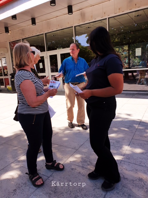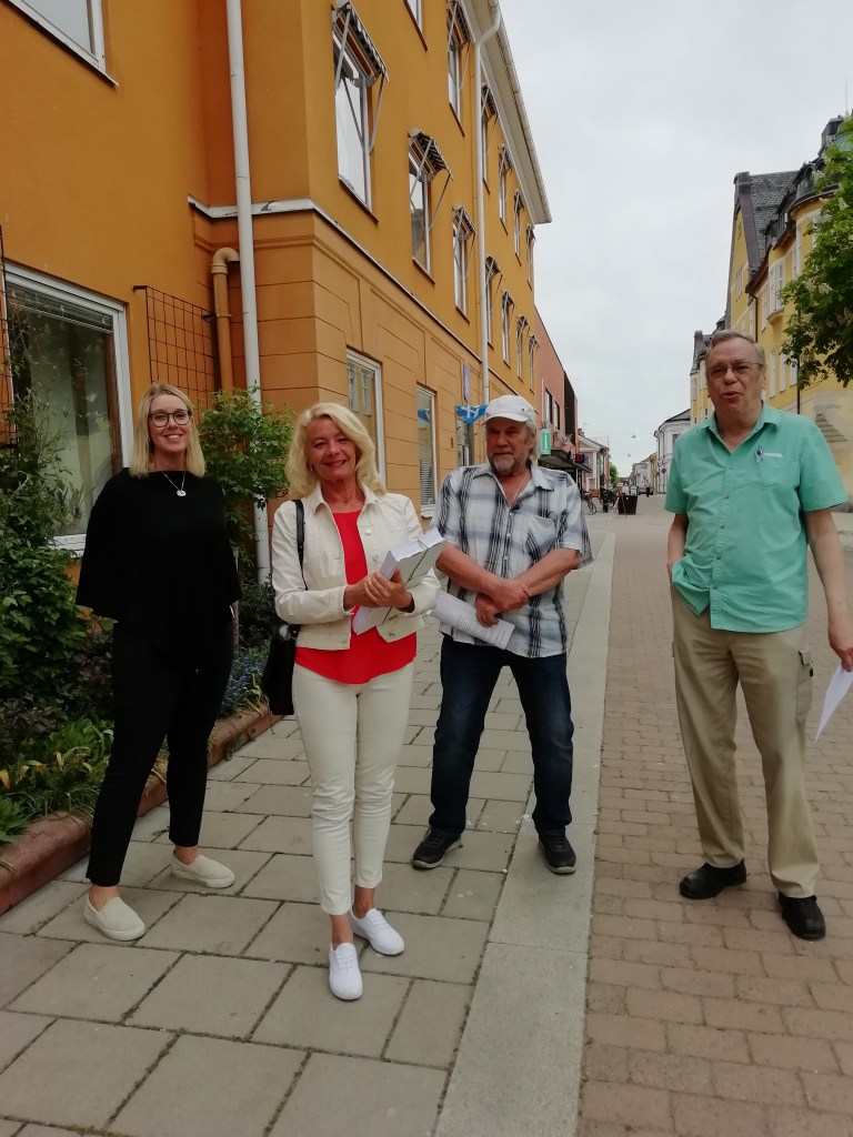 Överlämnande av protestlistor till, från vänster Ulrika Spårebo – oppositionsråd (s) Sala, Pia Nilsson – regionansvarig för (s), riksdagsledamot Roffe Meiding samt Lars Öberg ordförande för Hyresgästföreningen Sala/Hedby som står för insamlingen.