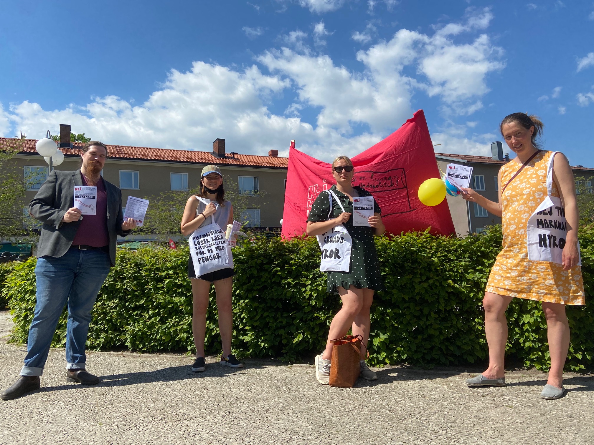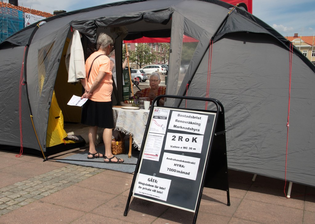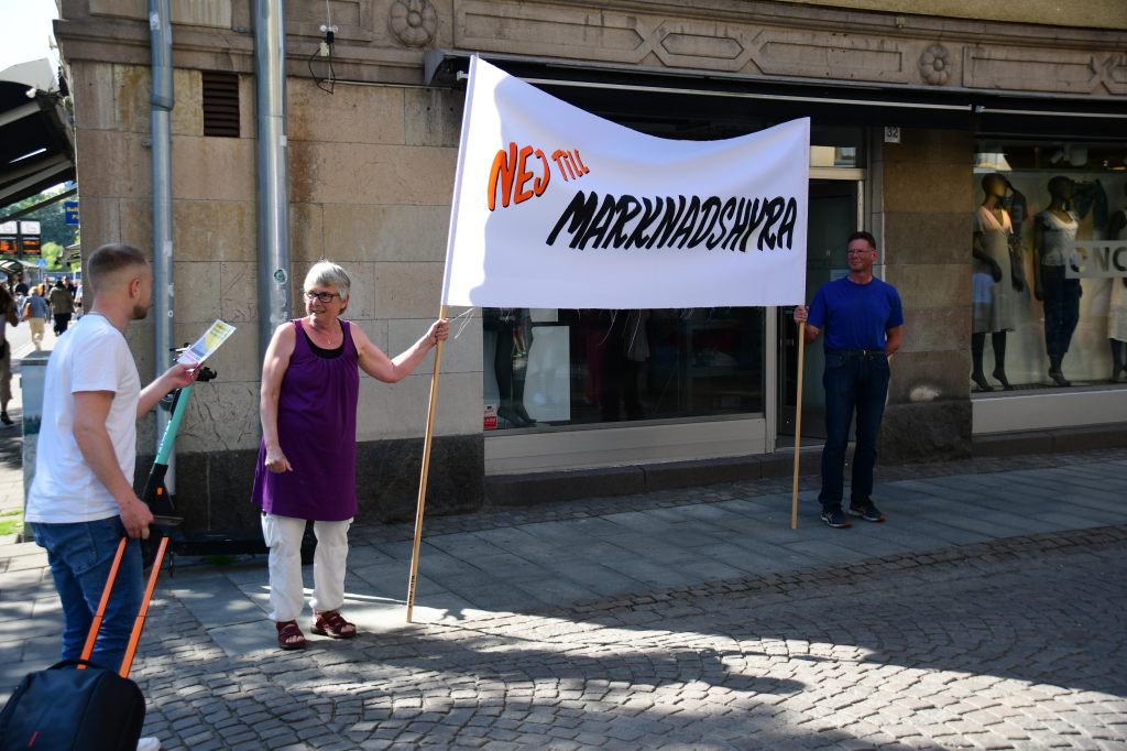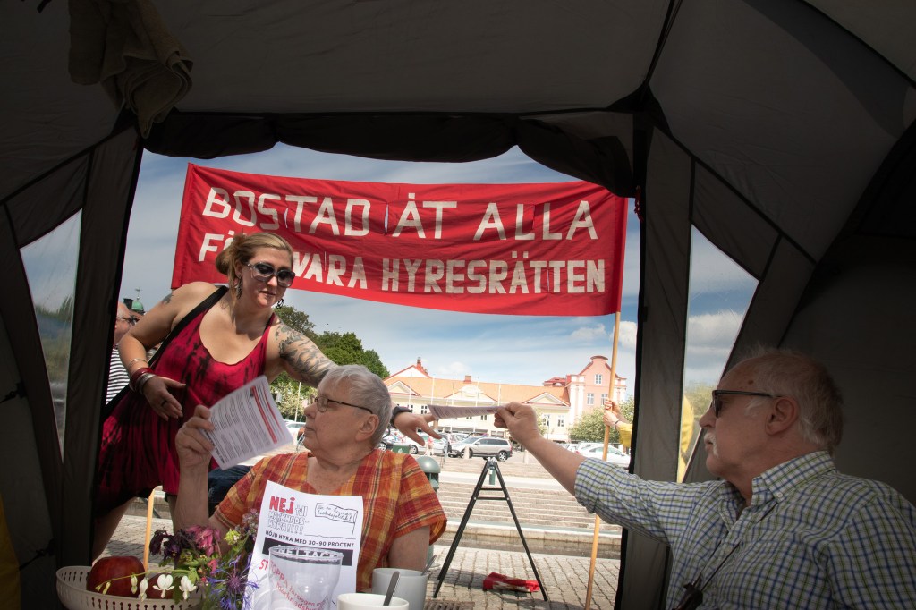Utredningen om marknadshyra i nyproduktion presenterades den 4 juni och justitieminister Morgan Johansson försökte med konststycket att framställa en av januariavtalets mest kontroversiella frågor – kan fälla regeringen – som en små sak som inte betyder något. Men ute på gator och torg tog protesterna återigen fart, med löfte att trappa upp till masskala efter sommaren. Här är bilder från en mängd orter, vilka utgör en del av de platser där protester ägde rum. Klicka på FORTSÄTT LÄSA