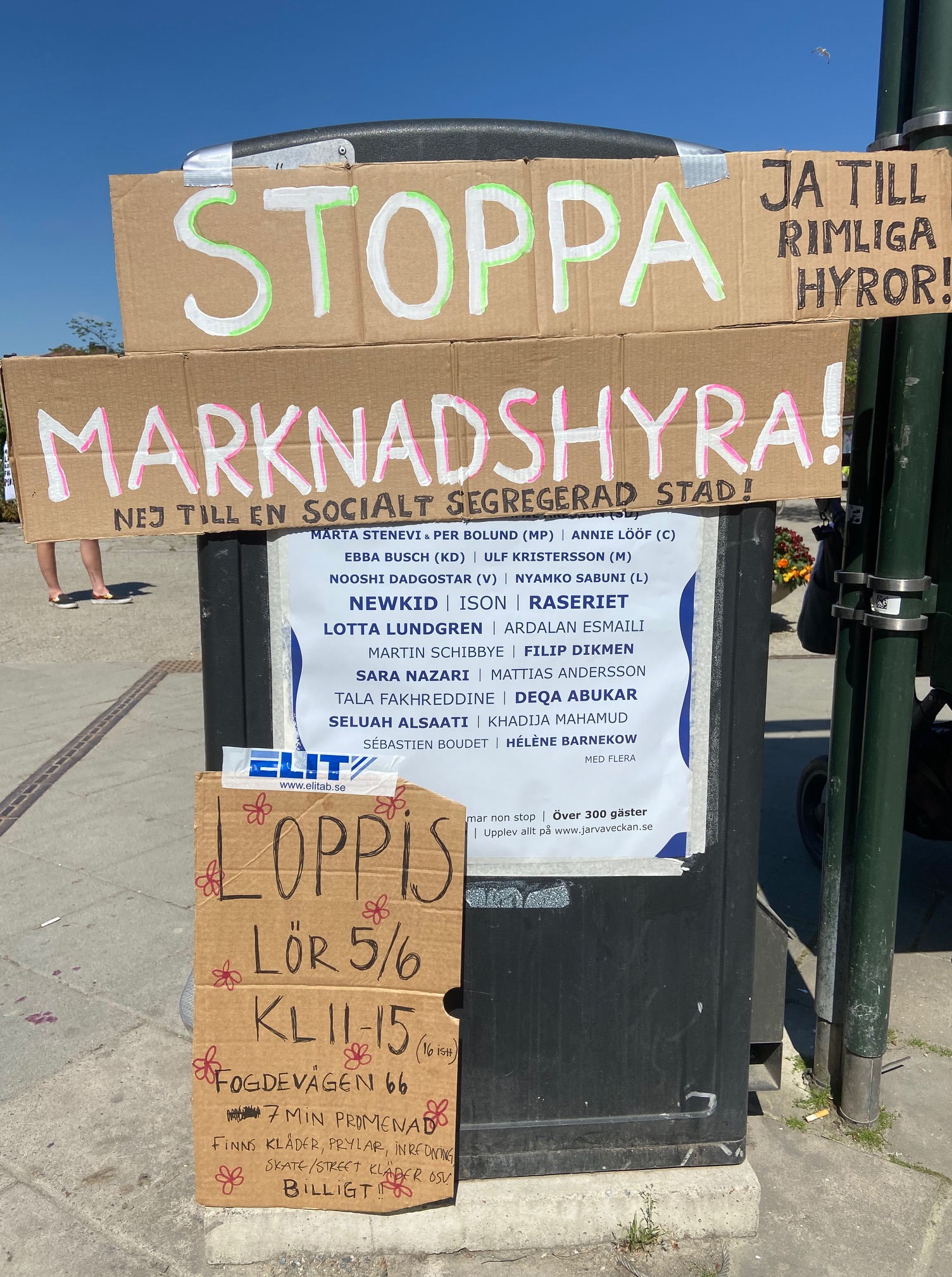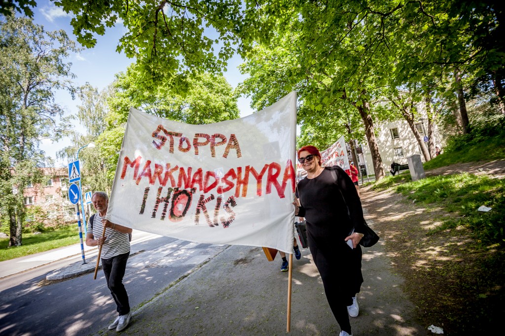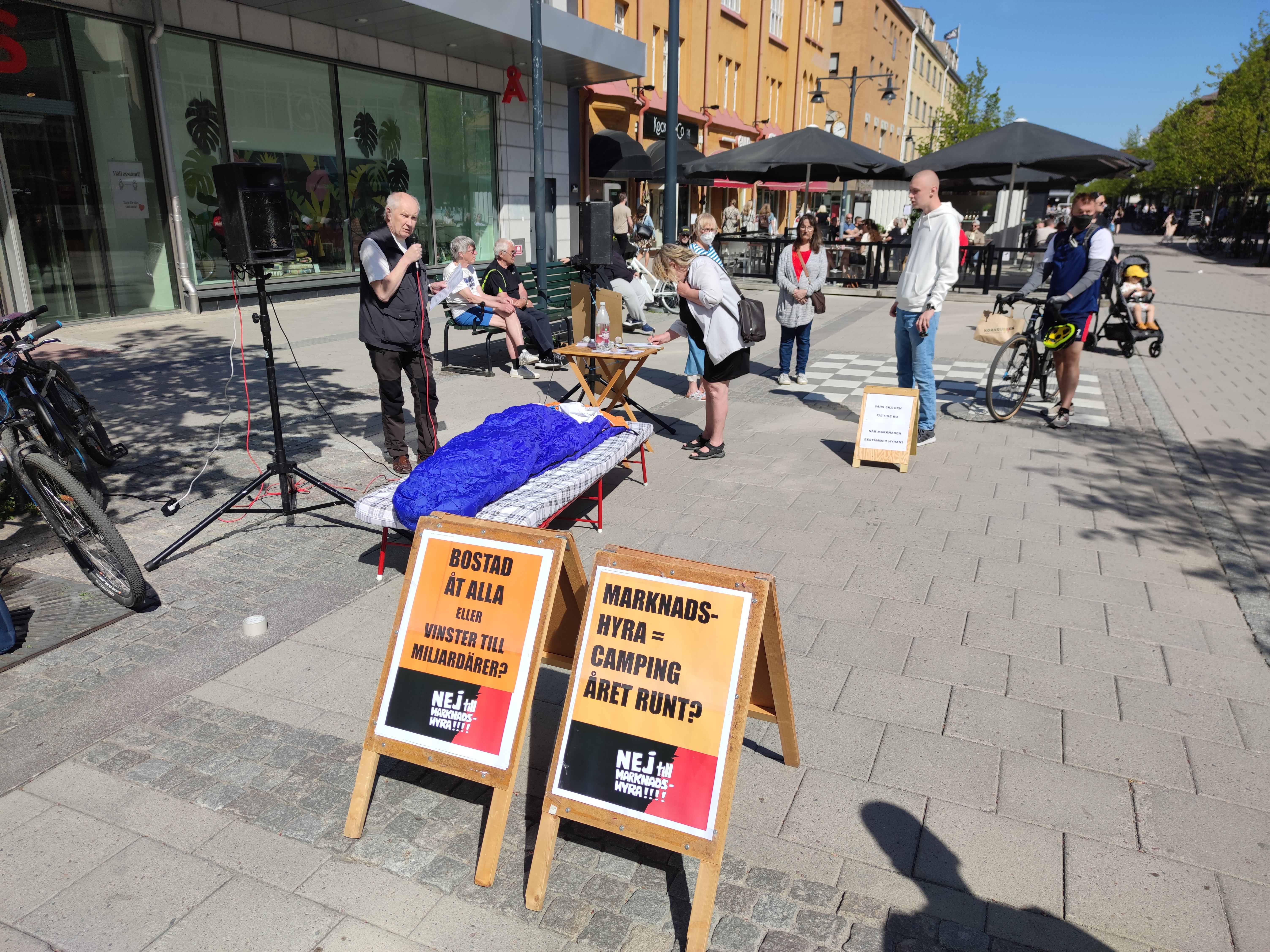 Utredningen om marknadshyra i nyproduktion presenterades den 4 juni och justitieminister Morgan Johansson försökte med konststycket att framställa en av januariavtalets mest kontroversiella frågor – kan fälla regeringen – som en små sak som inte betyder något. Men ute på gator och torg tog protesterna återigen fart, med löfte att trappa upp till masskala efter sommaren. Här är bilder från en mängd orter, vilka utgör en del av de platser där protester ägde rum. Klicka på FORTSÄTT LÄSA